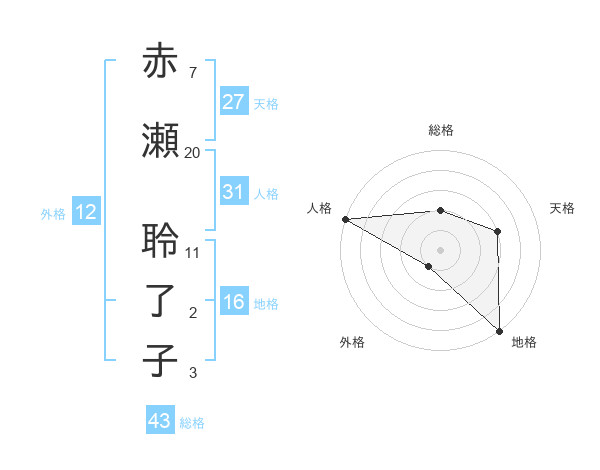 赤瀬 聆了子さんを姓名の画数から五運を鑑定