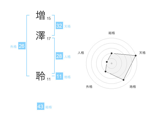 増澤 聆さんの天格は32画の5点!