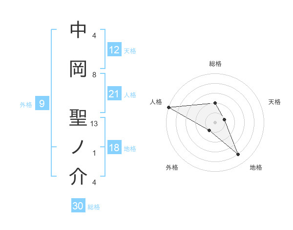 中岡 聖ノ介さんを姓名の画数から五運を鑑定
