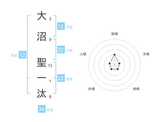 大沼 聖一汰さんを姓名の画数から五運を鑑定