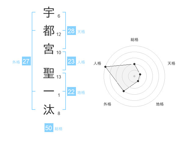 宇都宮 聖一汰さんを姓名の画数から五運を鑑定