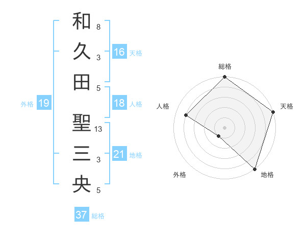 和久田 聖三央さんを姓名の画数から五運を鑑定
