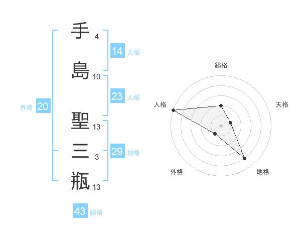 手島 聖三瓶さんの総格は43画の2点!