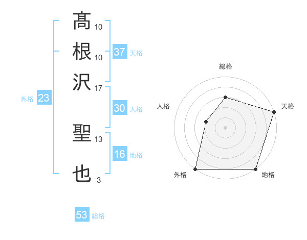 髙根沢 聖也さんの外格は23画の5点!