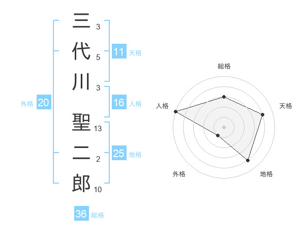 三代川 聖二郎さんの天格は11画の4点!