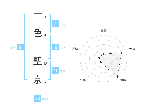 一色 聖京さんの総格は28画の1点!