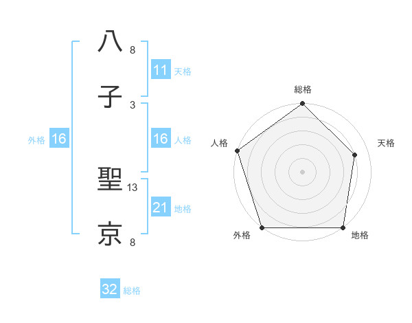 八子 聖京さんの総格は32画の5点!