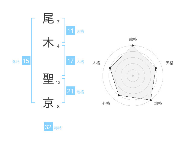 尾木 聖京さんを姓名の画数から五運を鑑定