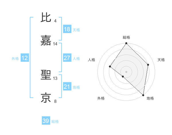 比嘉 聖京さんの総格は39画の5点!