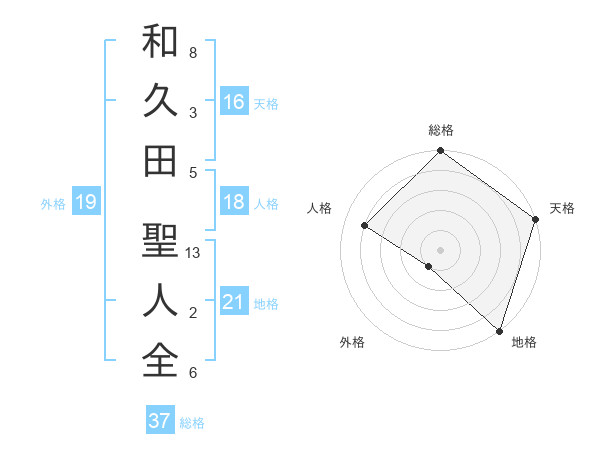 和久田 聖人全さんを姓名の画数から五運を鑑定