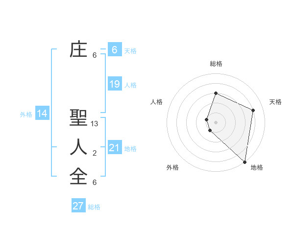 庄 聖人全さんの地格は21画の5点!