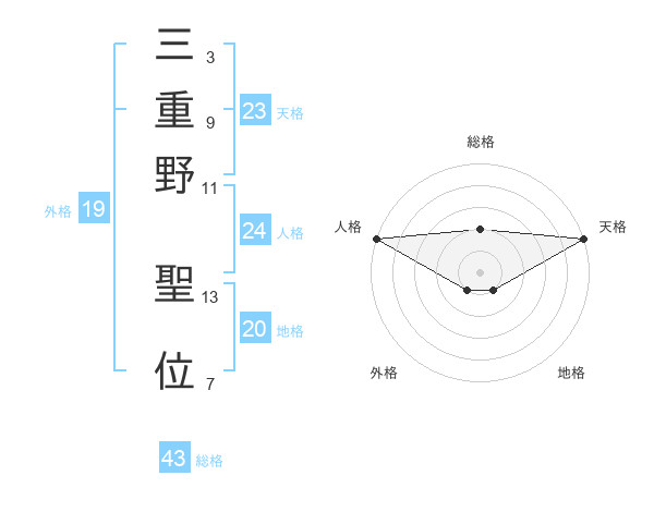 三重野 聖位さんを姓名の画数から五運を鑑定