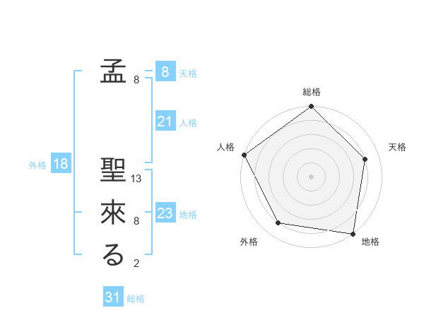孟 聖來るさんの総格は31画の5点!
