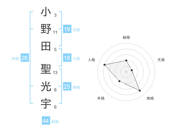 小野田 聖光宇さんを姓名の画数から五運を鑑定