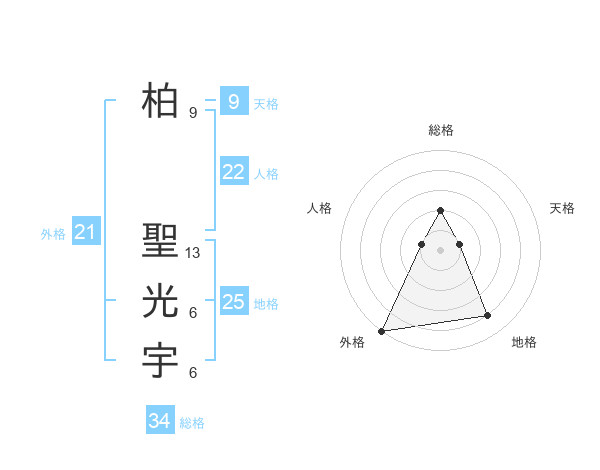 柏 聖光宇さんの総格は34画の2点!
