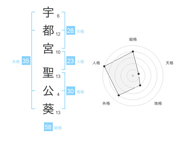 宇都宮 聖公葵さんを姓名の画数から五運を鑑定