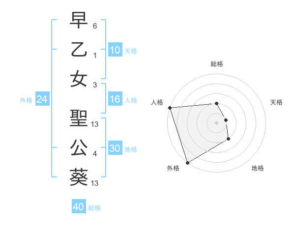 早乙女 聖公葵さんを姓名の画数から五運を鑑定