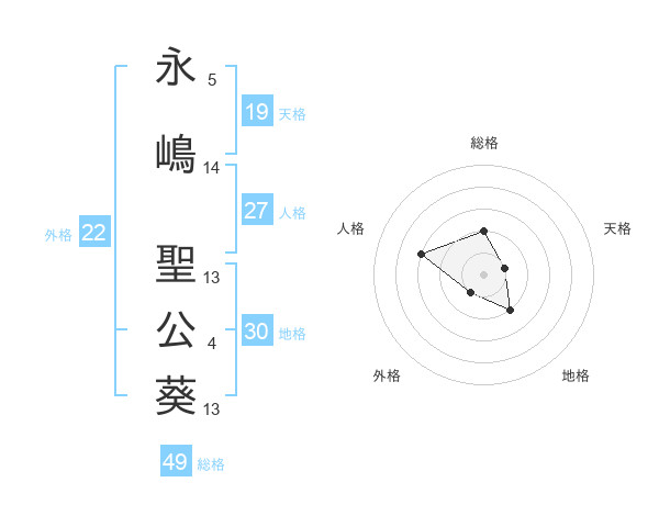 永嶋 聖公葵さんの外格は22画の1点!