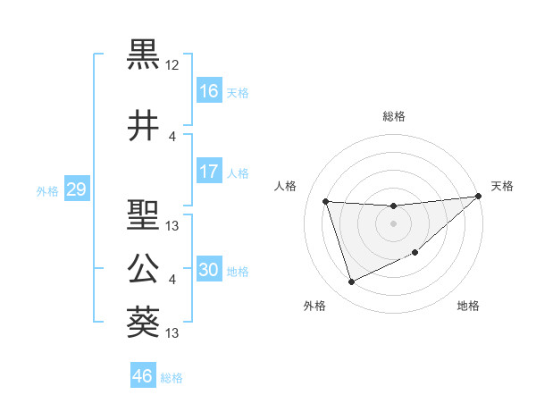 黒井 聖公葵さんの天格は16画の5点!