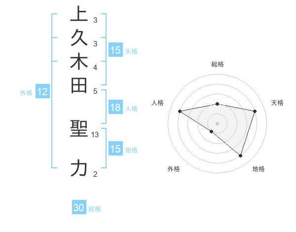上久木田 聖力さんを姓名の画数から五運を鑑定
