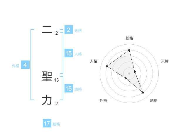 二 聖力さんの総格は17画の4点!