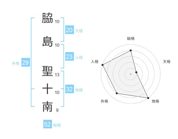 脇島 聖十南さんの地格は32画の5点!