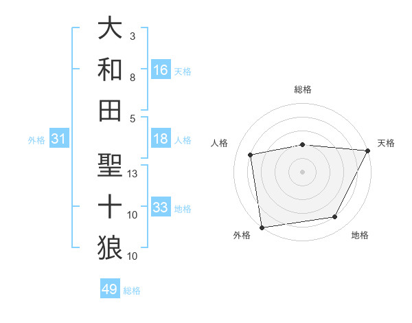 大和田 聖十狼さんを姓名の画数から五運を鑑定
