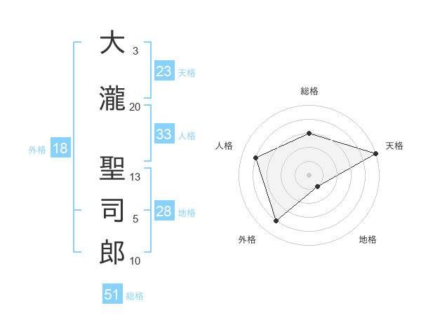 大瀧 聖司郎さんの総格は51画の3点!
