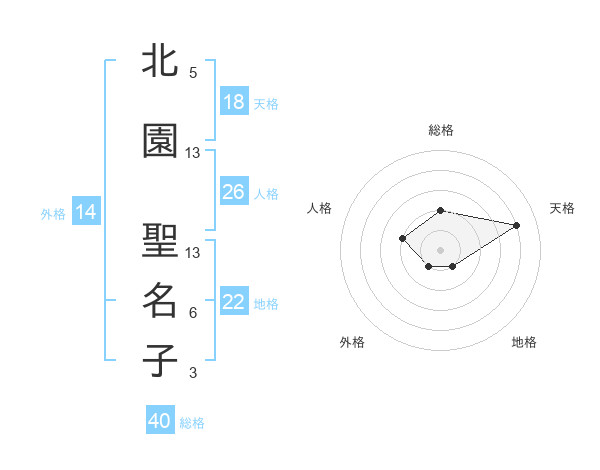 北園 聖名子さんを姓名の画数から五運を鑑定