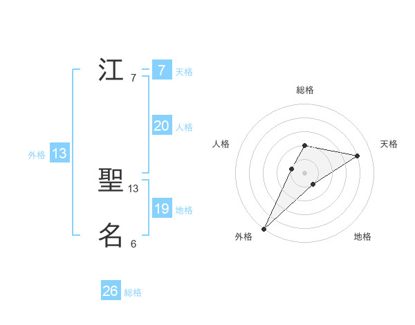 江 聖名さんの外格は13画の5点!