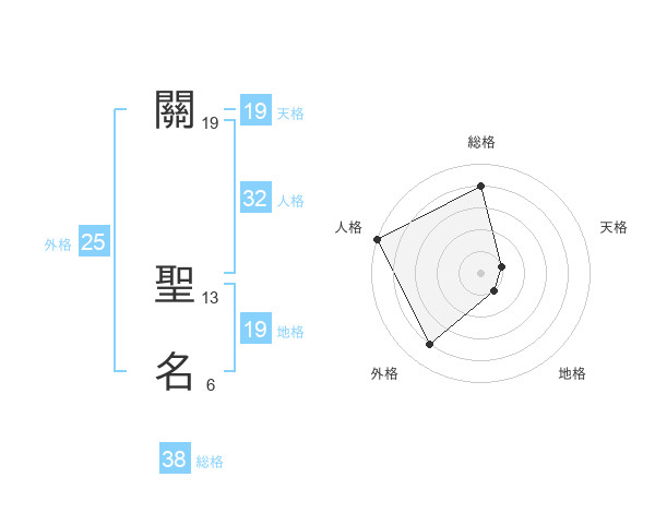 關 聖名さんの総格は38画の4点!