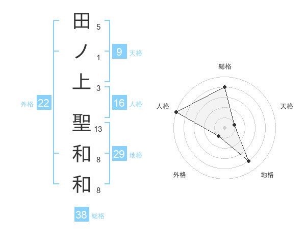 田ノ上 聖和和さんを姓名の画数から五運を鑑定