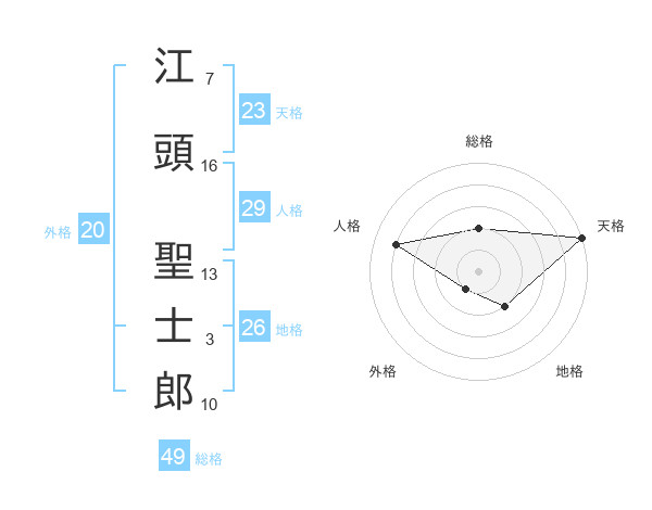 江頭 聖士郎さんを姓名の画数から五運を鑑定