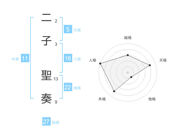 二子 聖奏さんの外格は11画の4点!