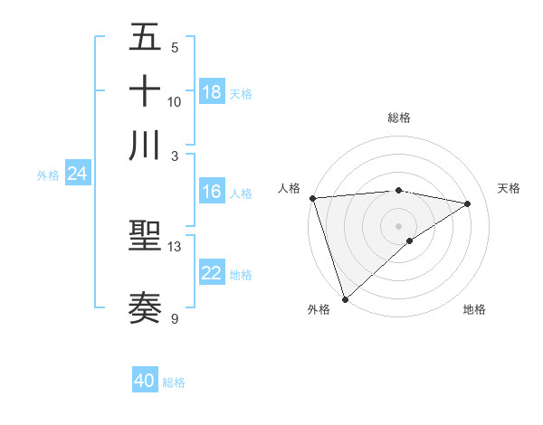 五十川 聖奏さんの外格は24画の5点!