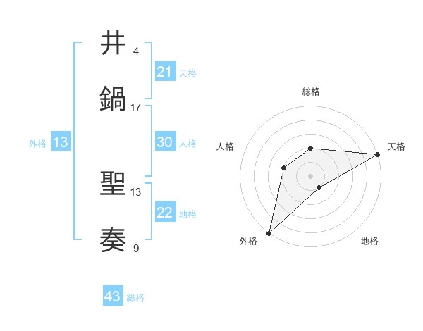 井鍋 聖奏さんの外格は13画の5点!