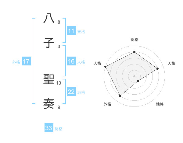 八子 聖奏さんの外格は17画の4点!