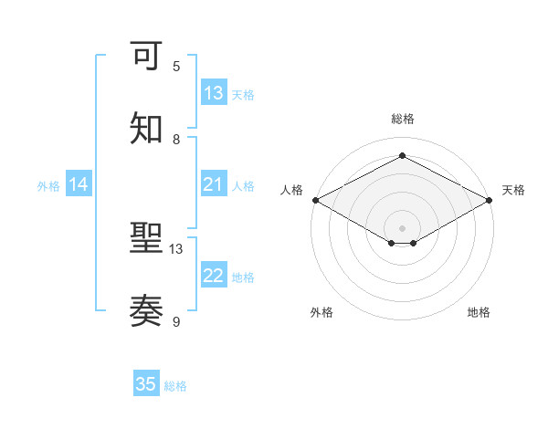 可知 聖奏さんの天格は13画の5点!