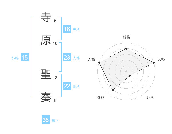 寺原 聖奏さんを姓名の画数から五運を鑑定