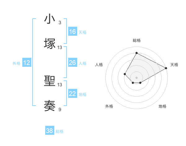 小塚 聖奏さんを姓名の画数から五運を鑑定