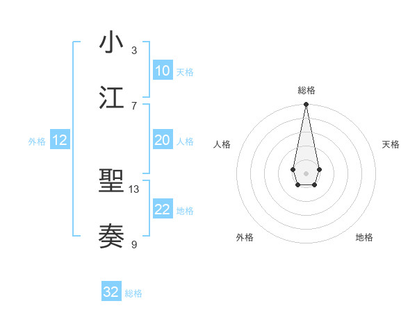 小江 聖奏さんを姓名の画数から五運を鑑定