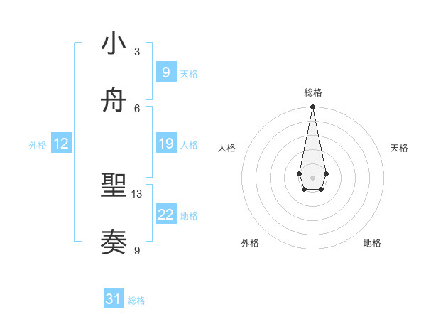 小舟 聖奏さんを姓名の画数から五運を鑑定