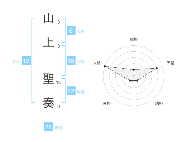 山上 聖奏さんの総格は28画の1点