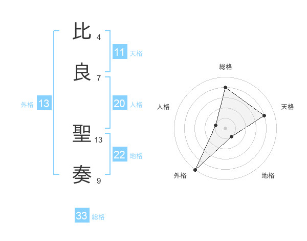比良 聖奏さんの地格は22画の1点!