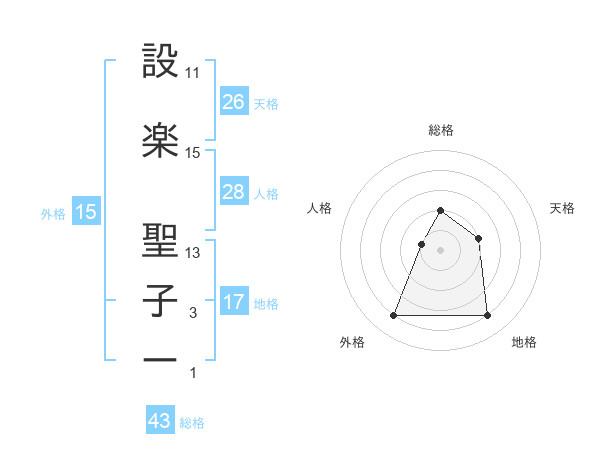 設楽 聖子ーさんを姓名の画数から五運を鑑定