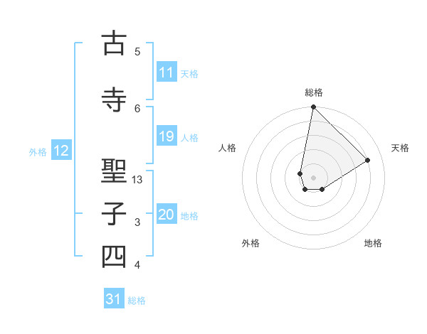 古寺 聖子四さんの総格は31画の5点!
