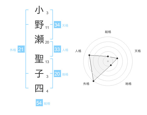 小野瀬 聖子四さんを姓名の画数から五運を鑑定