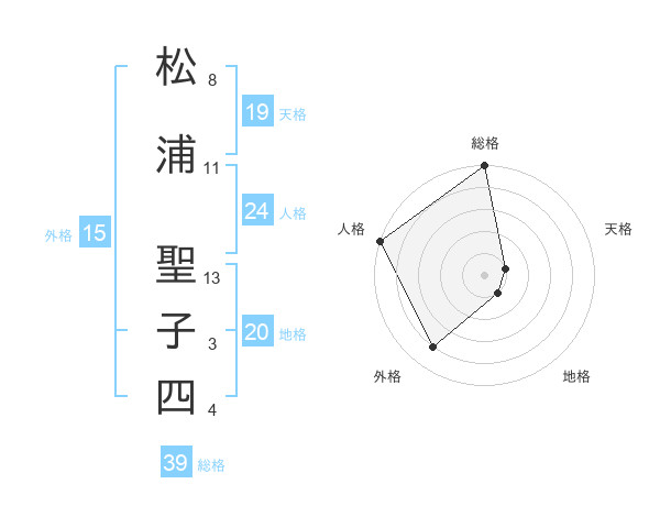 松浦 聖子四さんの総格は39画の5点!