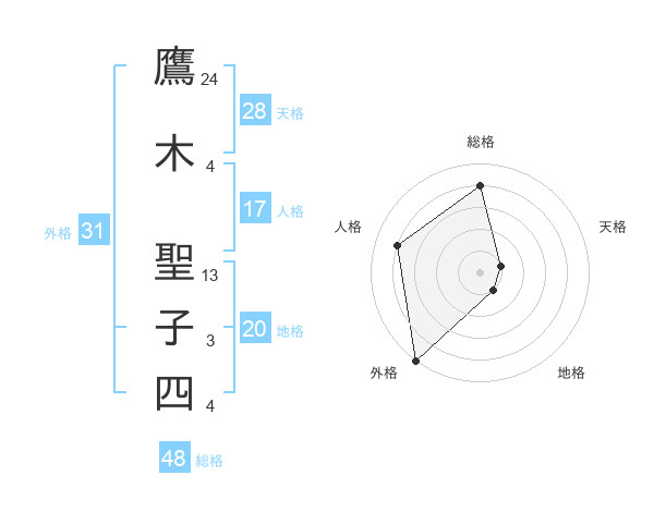 鷹木 聖子四さんを姓名の画数から五運を鑑定