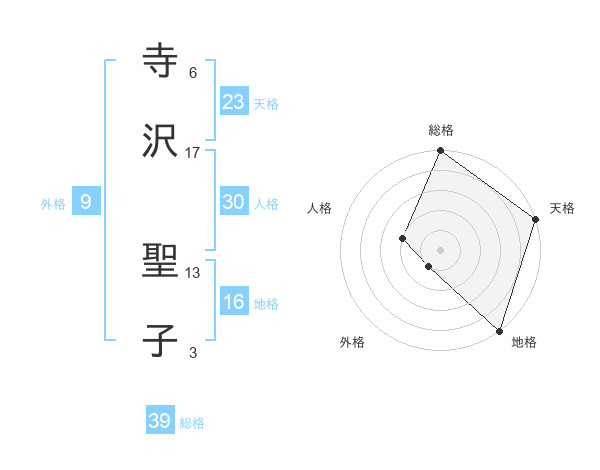 寺沢 聖子さんの総格は39画の5点!